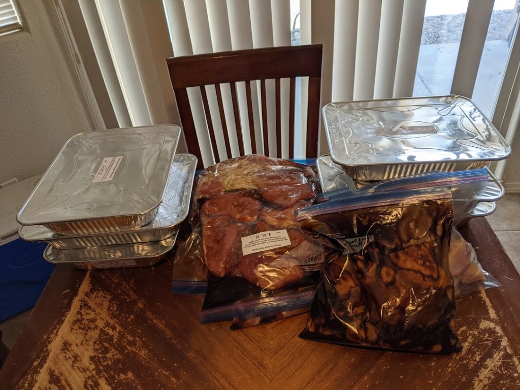 This past weekend “The Artist” and “The Batman” helped with this month’s freezer menu plan. “The Batman” went with me to help with the big shopping at Sam’s Club, and “The Artist” went with me to Smith’s (Kroger) to get everything else. Here’s what we put together!