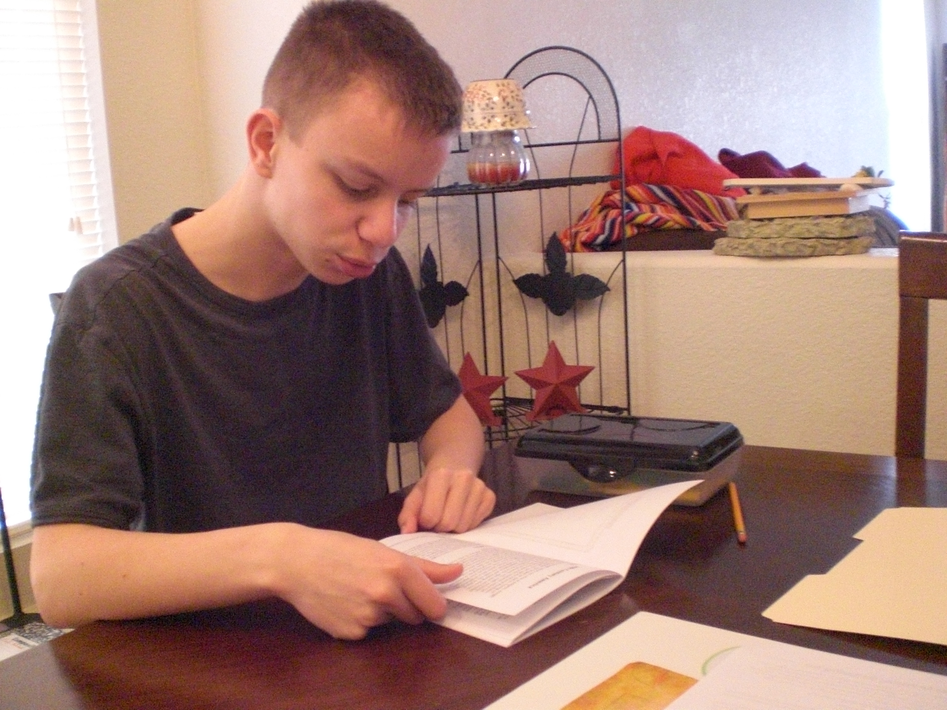 Here is the one picture I managed to get of “The Artist” beginning a crossword puzzle in the regular Notebooking Journal, before going back to the Junior Notebooking Journal, which he very much prefers! 🙂